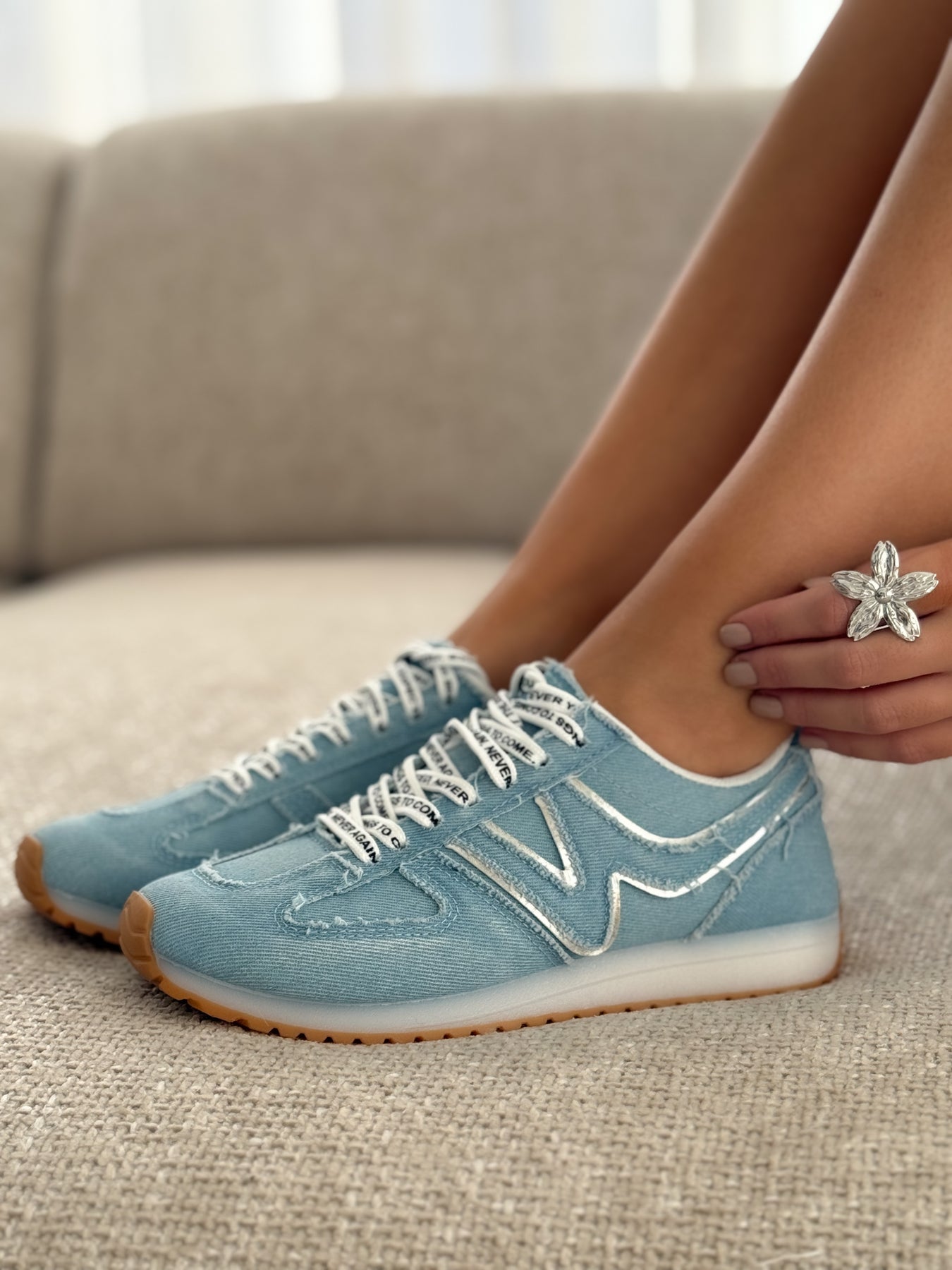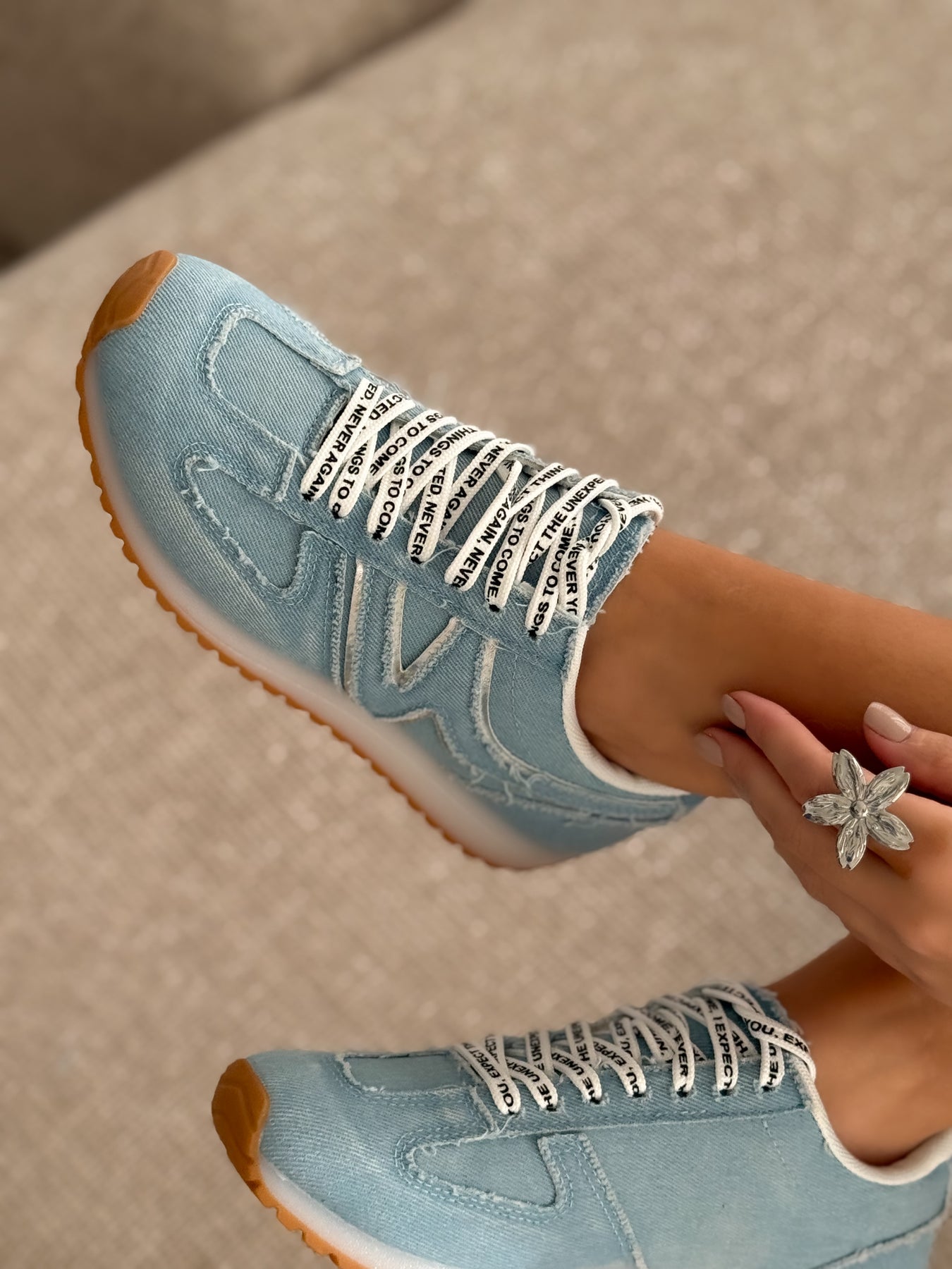 Les baskets Stormy revisitent le style rétro avec leur matière denim bleu clair, parfaite pour apporter une touche tendance et casual à vos tenues. Leur semelle caramel et leurs surpiqûres apparentes renforcent le look vintage, tandis que les lacets imprimés apportent une touche moderne. Légères, confortables et stylées, elles se portent facilement avec un jean, une robe ou un ensemble détente.