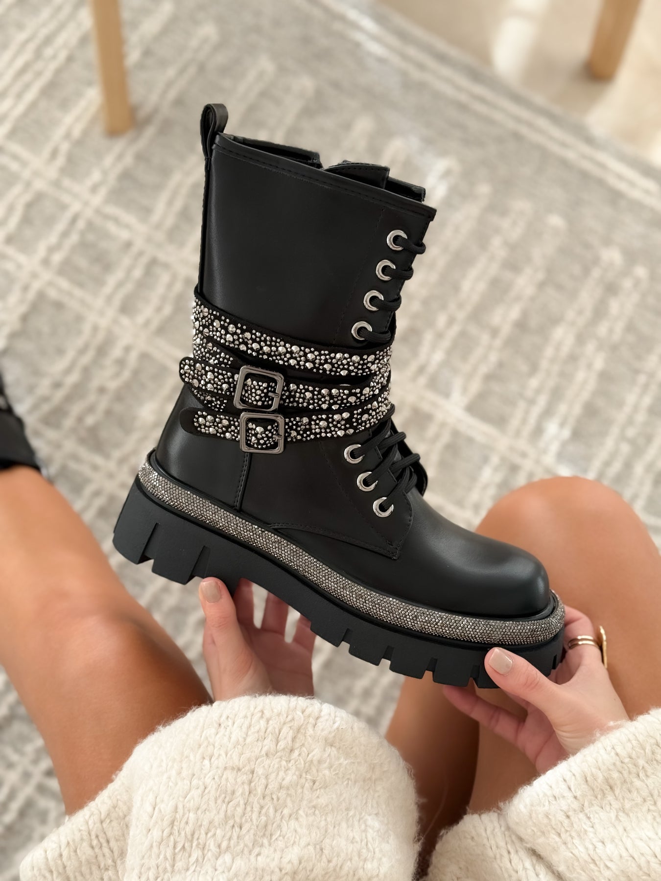 ✔ Brides incrustées de détails argentés pour un effet chic et rock