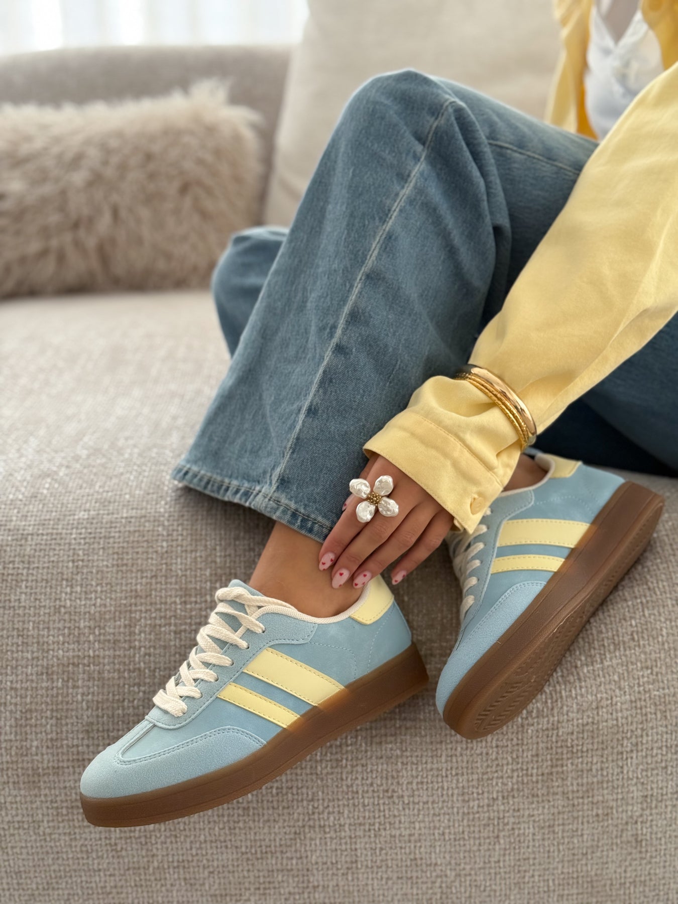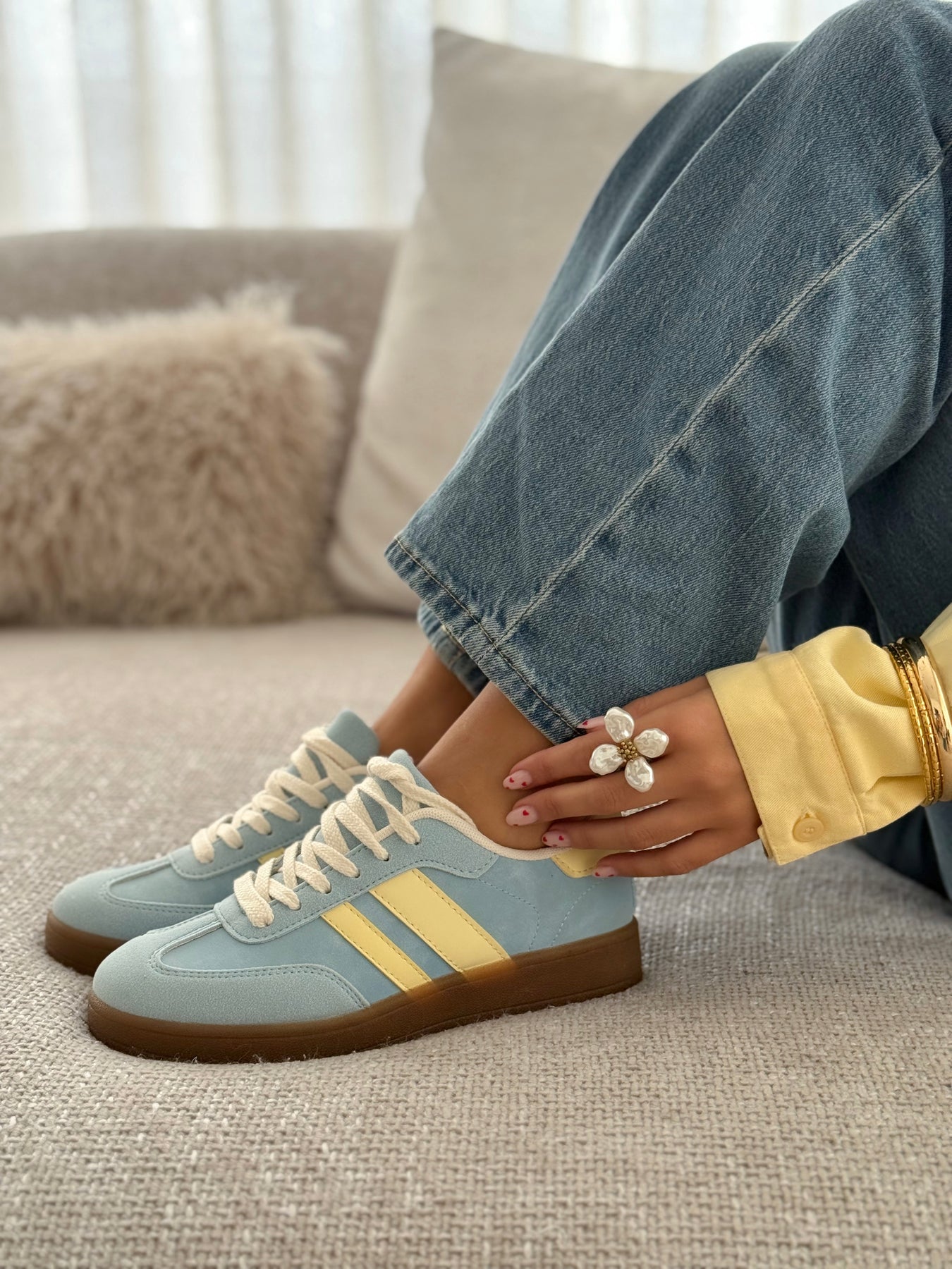 Les baskets Hollia insufflent une vraie dose de fraîcheur à vos looks. Leur duo de couleurs pastel, bleu ciel et jaune doux, crée une harmonie délicate et ultra tendance, parfaite pour la saison. La semelle gomme apporte confort et stabilité tout au long de la journée, tout en affirmant un style moderne et facile à porter.