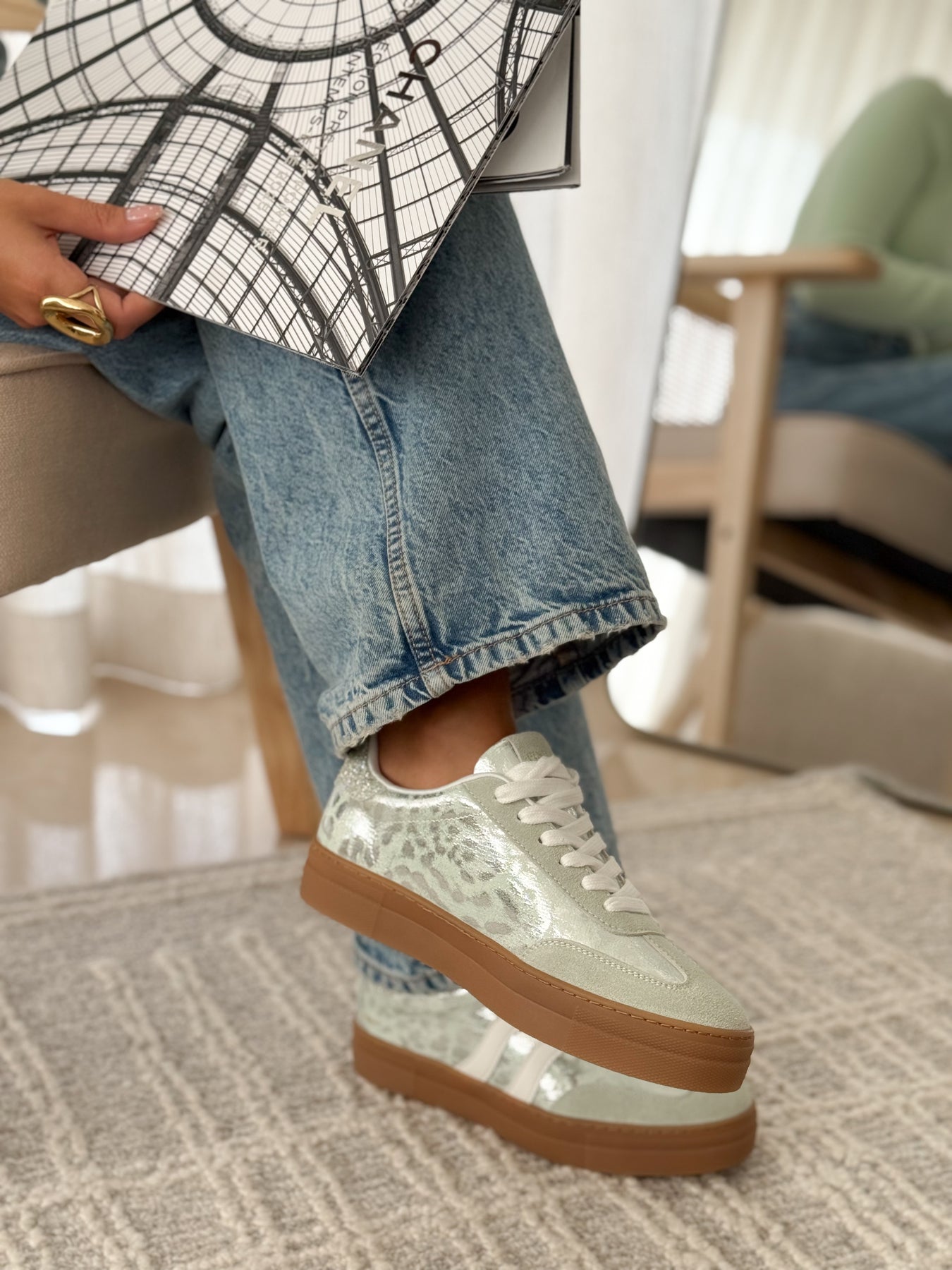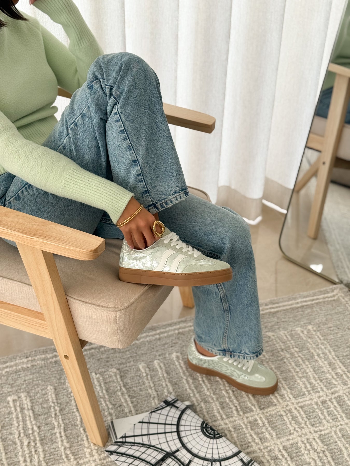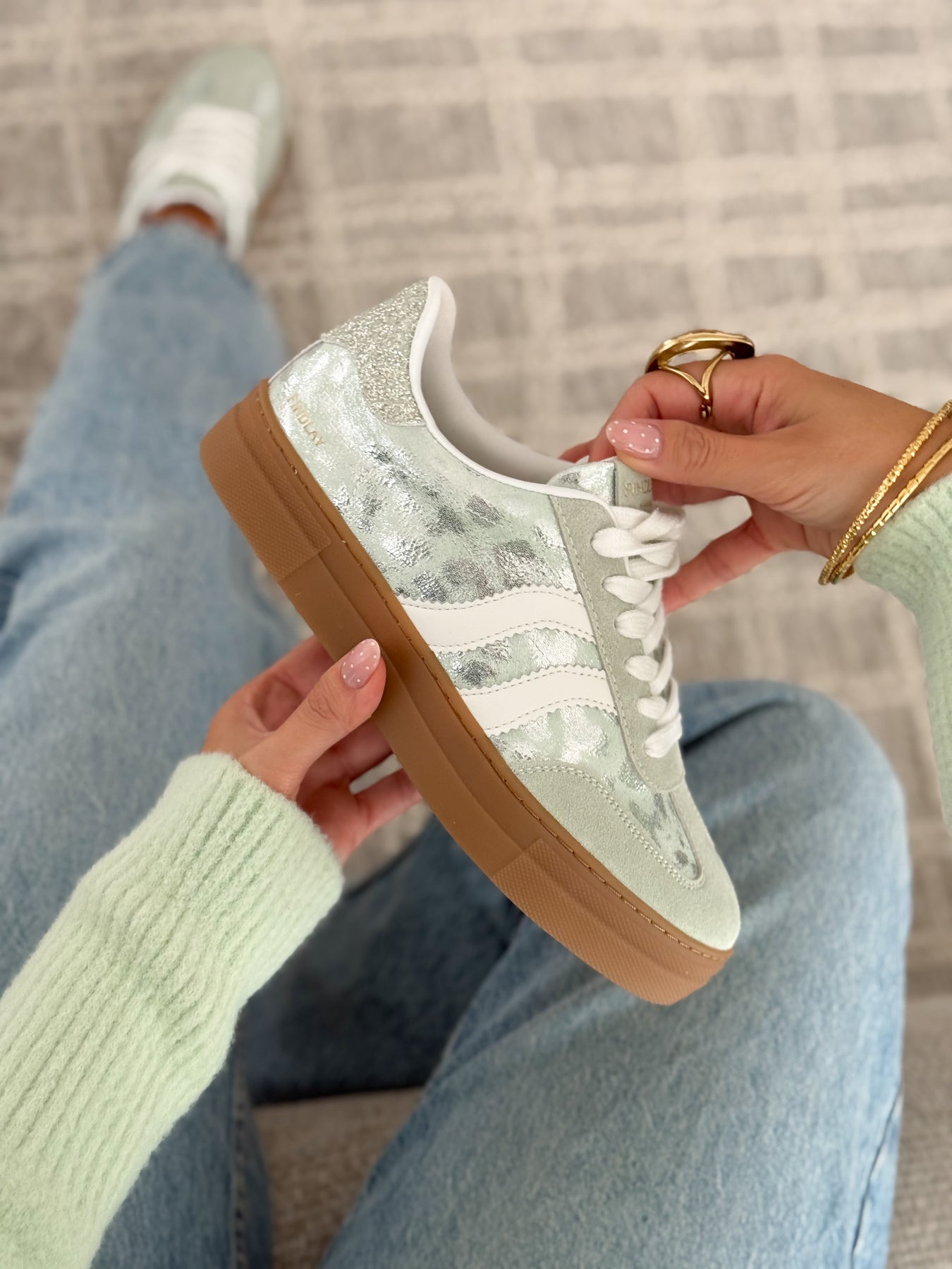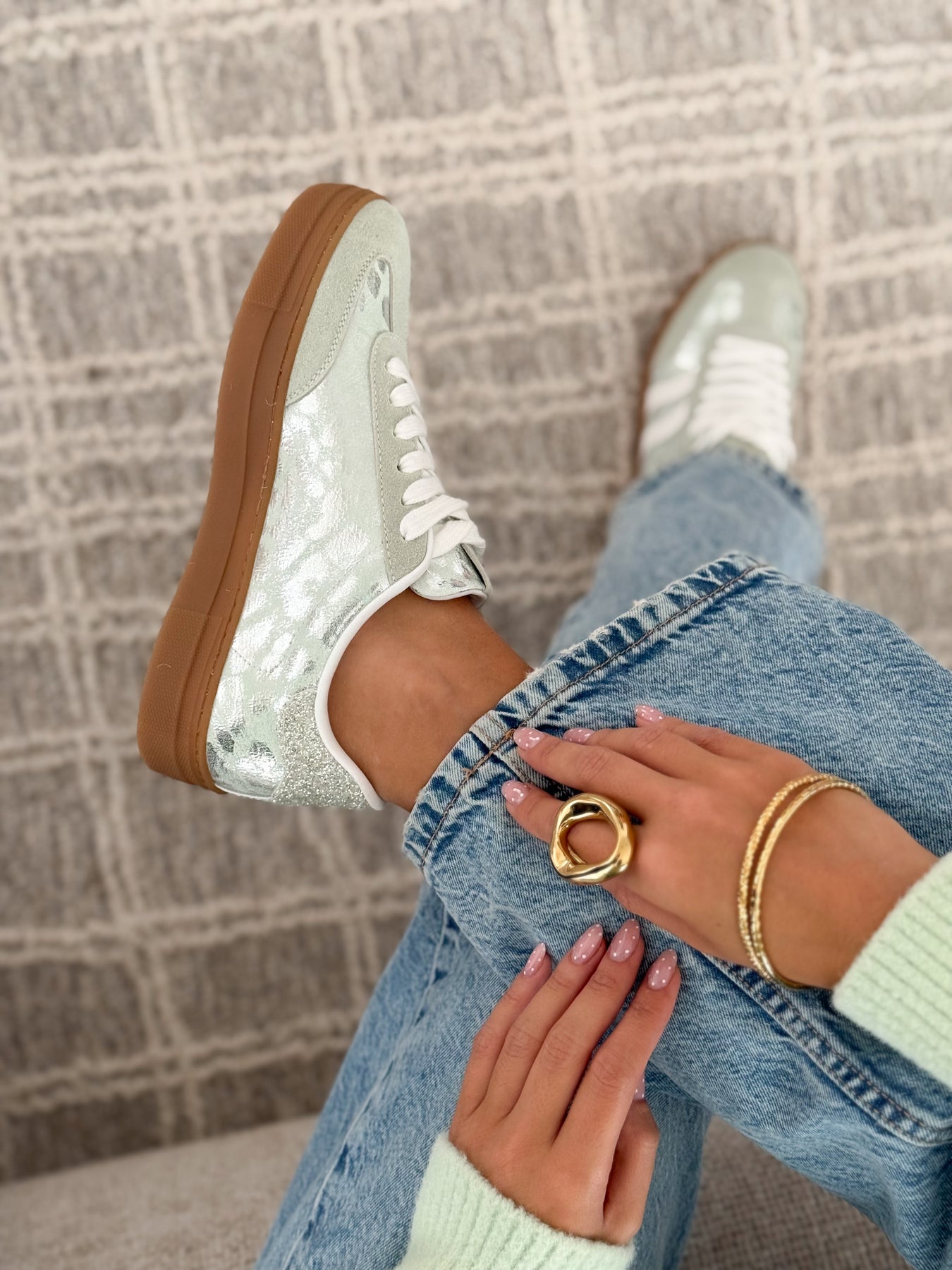 Les baskets Manuella apportent une touche de fraîcheur et de lumière à vos looks. Leur teinte vert d’eau associée à des finitions légèrement brillantes crée un style à la fois doux et moderne. Une paire parfaite pour illuminer une tenue tout en restant facile à porter au quotidien.