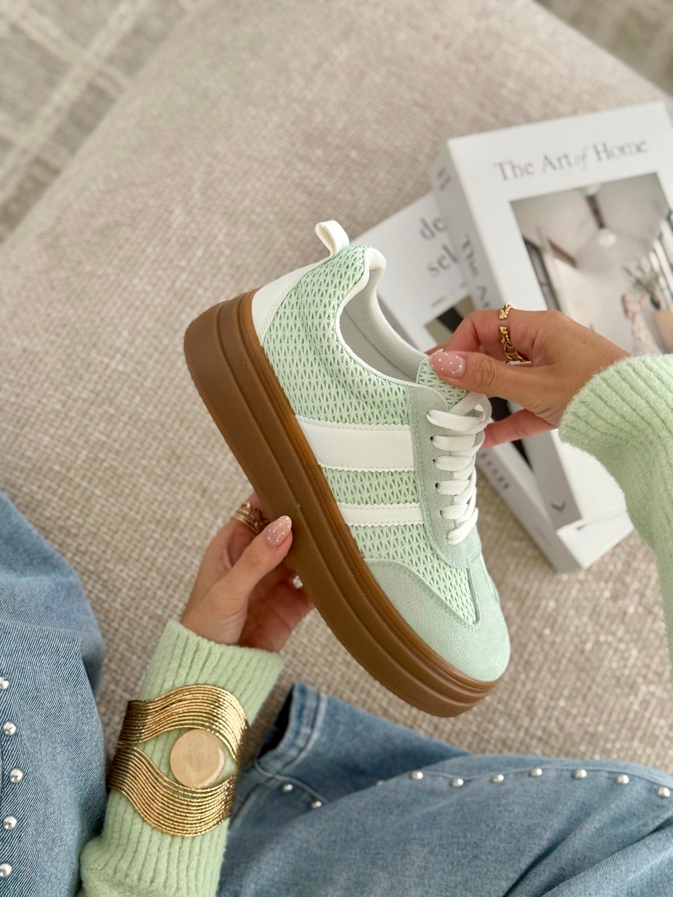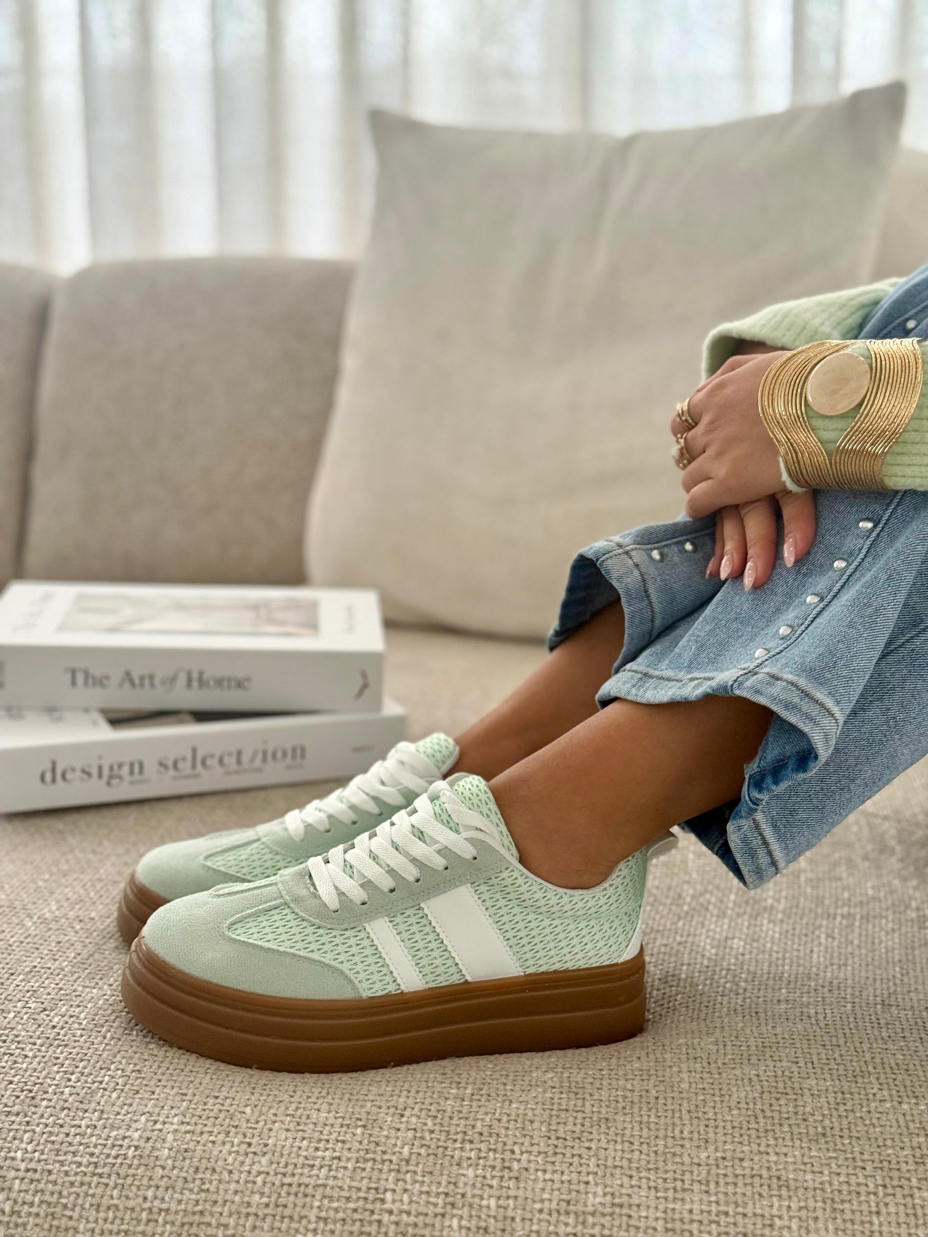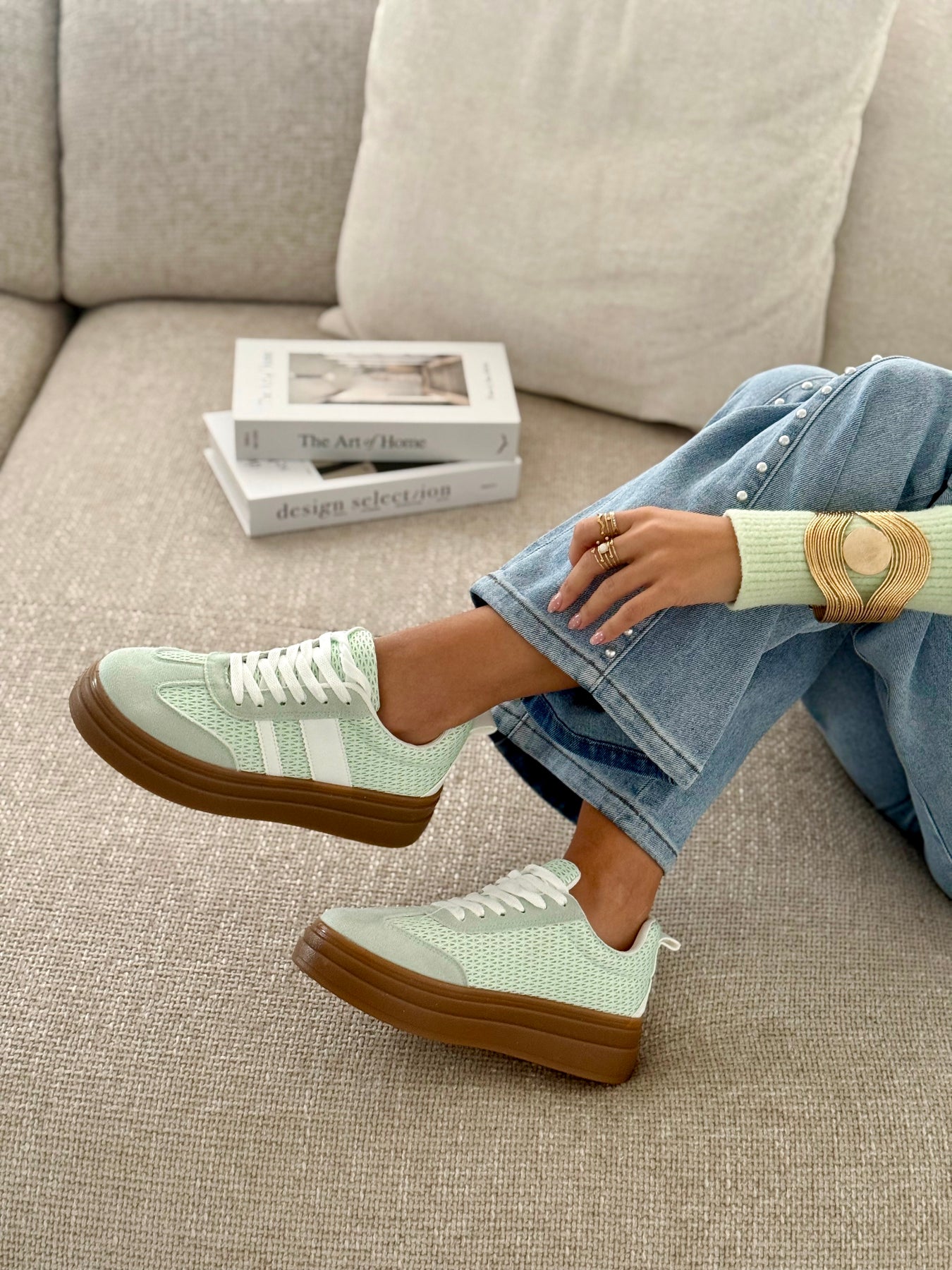 Les baskets Paola sont parfaites pour un look frais et moderne. Leur teinte vert pastel apporte une touche douce et tendance, idéale pour la saison. Confortables et faciles à porter, elles s’adaptent à toutes vos envies, du quotidien au look casual chic.