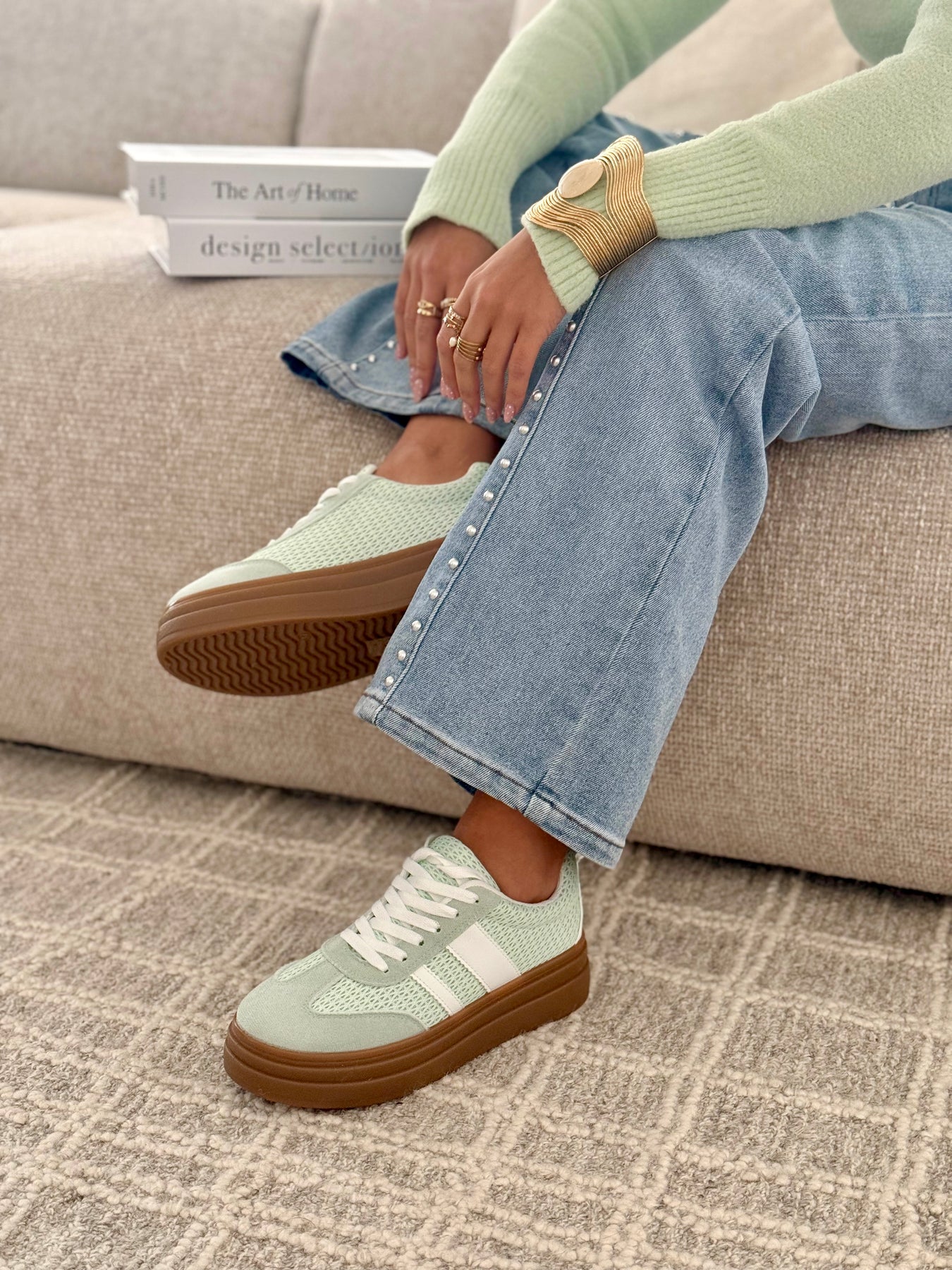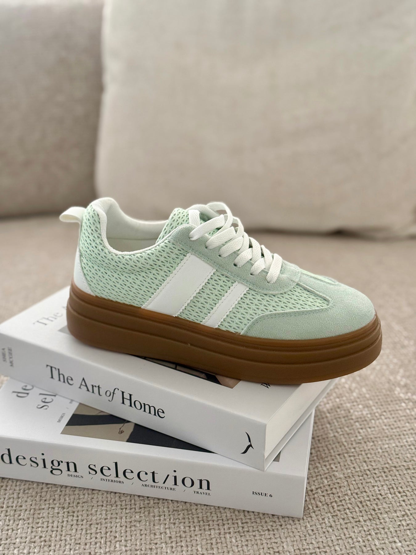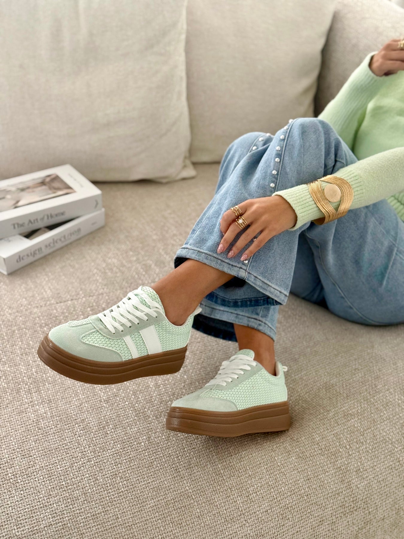 Les baskets Paola sont parfaites pour un look frais et moderne. Leur teinte vert pastel apporte une touche douce et tendance, idéale pour la saison. Confortables et faciles à porter, elles s’adaptent à toutes vos envies, du quotidien au look casual chic.